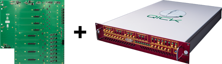 Ordering: The QICK system shown here requires a AMD ZCU216 board that can be purchased separately from AMD (see https://www.amd.com/en/products/adaptive-socs-and-fpgas/evaluation-boards/zcu216.html#). All other components can be purchased here. To purchase using a credit card, click the "Purchase" button below. To receive a quote and purchase using a Purchase Order, please email a list of the desired system components and your shipping address to contact@realdigital.org. After we receive your PO referencing the quote, we will send your order, and send you a net-30 invoice that can be paid by check, credit card, or wire transfer.
